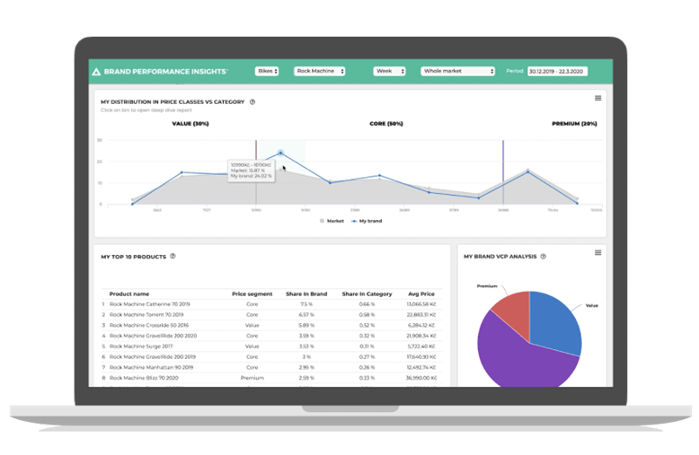 - kde je největší poptávka v cenových pásmech a jaký je můj tržní podíl v nich,