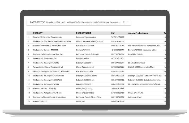 V reportu najdete informace o tom, jak spárovat nyní nenapárované produkty, podíváte se na doporučené názvy produktů pro automatické napárování, dozvíte se, jaké doporučujeme kategorie pro napárování produktů a v neposlední řadě v reportu najdete také seznam produktů, které se nepodařilo s Heurekou napárovat.