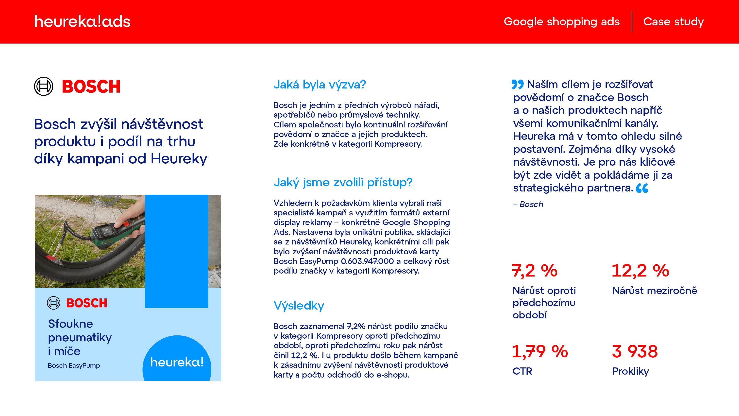 Zvýšení podílu značky o 12,2 % oproti předchozímu roku, zásadní zvýšení návštěvnosti produktové karty i počet odchodů do e-shopu. Jak Heureka docílala těchto čísel? Přečtěte si novou případovou studii a dozvíte se, jak se správně mířenou kampaní dosáhnete parádních výsledků.